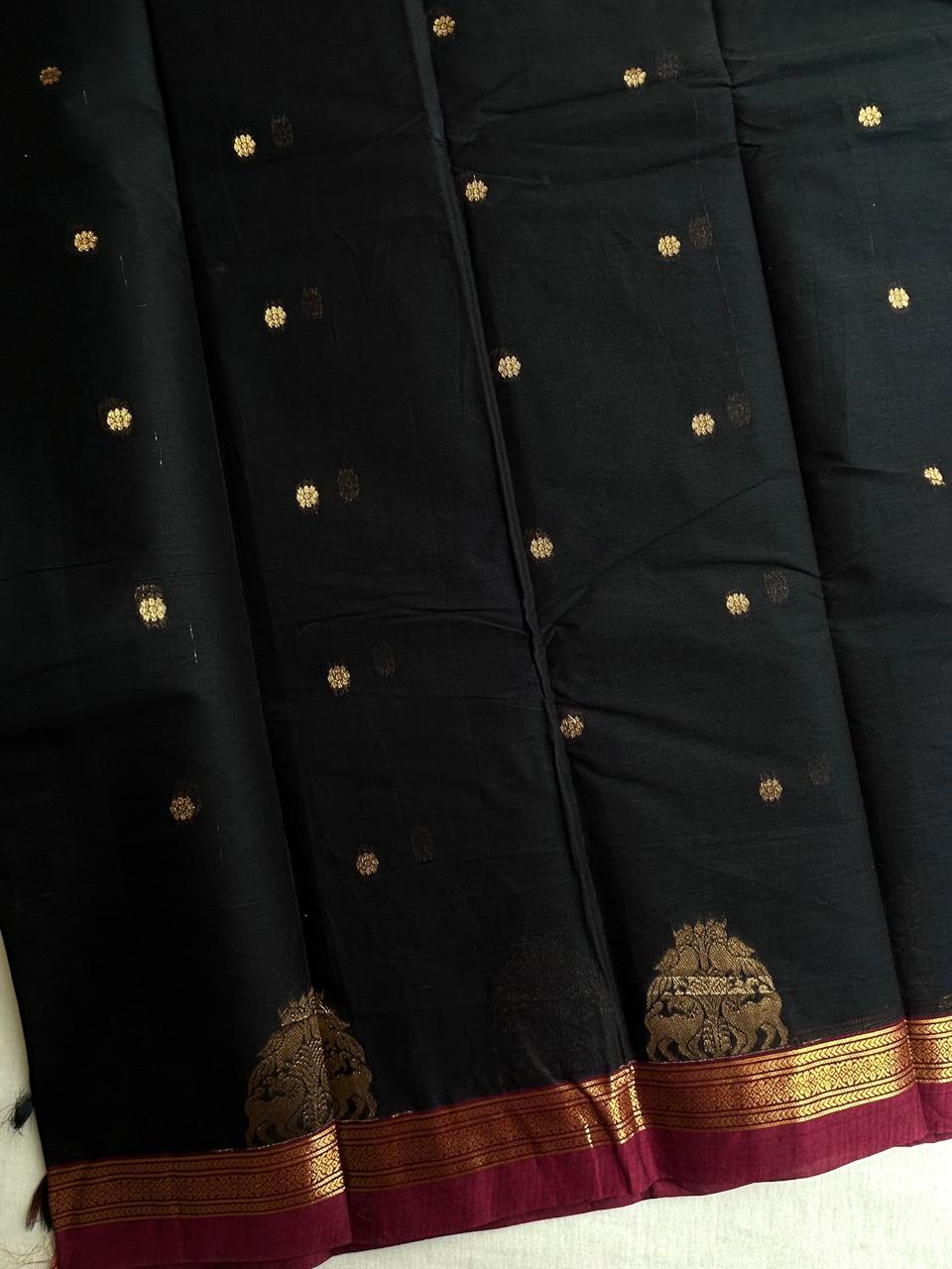 Kanchi cotton with premium zari weaves - Black and maroon